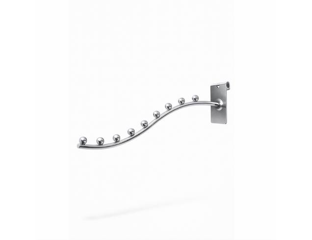 Металлическая флейта-кронштейн для торговой сетки — удобный элемент торгового оборудования, который позволяет эстетично и компактно размещать одежду и аксессуары на вешалках. Простое крепление и современный хромированный дизайн делают её отличным выбором для любых витрин.