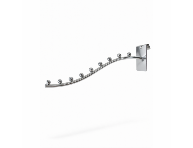 Металлическая флейта-кронштейн для торговой сетки — удобный элемент торгового оборудования, который позволяет эстетично и компактно размещать одежду и аксессуары на вешалках. Простое крепление и современный хромированный дизайн делают её отличным выбором для любых витрин.