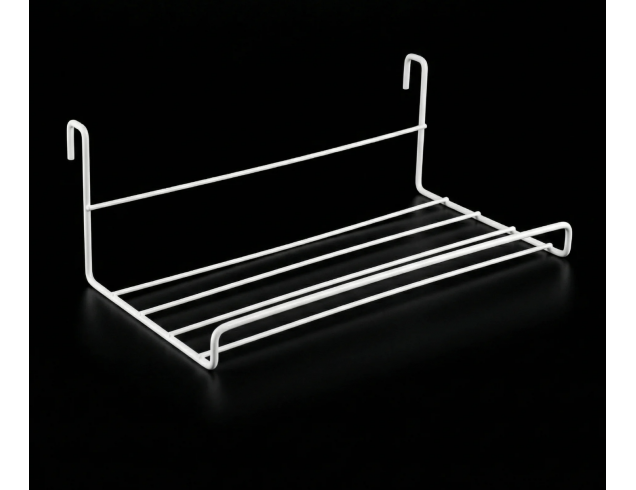 Металлическая полка с бортиком предназначена для размещения обуви на торговых сетках. Прочная конструкция и аккуратный внешний вид делают её идеальным решением для магазинов обуви, одежды и аксессуаров.