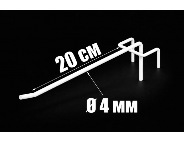 Металевий гачок довжиною 20 см та діаметром 4 мм ідеально підходить для сіток з вічком 50×50 мм. Забезпечує зручне розміщення дрібних та середніх товарів у магазинах, шоурумах і на ярмарках. Легко монтується, має високу міцність та стійкість до зносу.