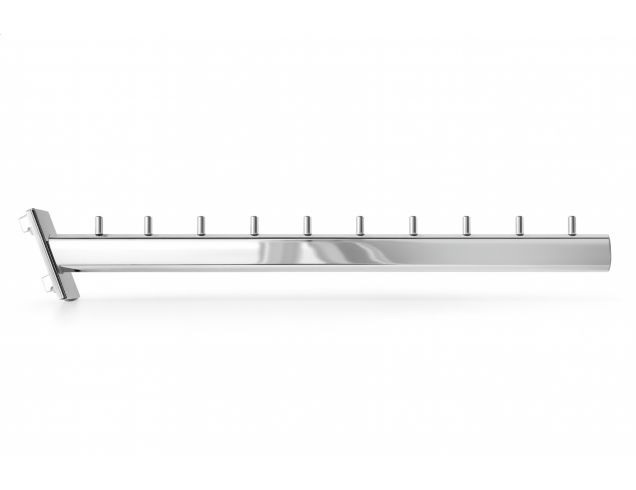 Кронштейн (флейта) хромований в рейку С-10 45 см— надійний та універсальний елемент навісного обладнання, призначений для встановлення в пристінну рейку. Ідеально підходить для демонстрації одягу на вішалках, сумок та інших товарів на підвісах.