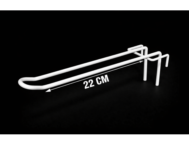 Подвійний металевий гачок довжиною 22 см — зручне рішення для викладки товарів на торгових сітках. Посилена конструкція дозволяє рівномірно розподілити навантаження та розмістити важчі товари. Підходить для сіток з вічком 50×50 мм.