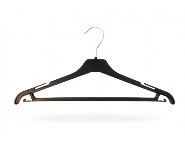 Компактные и универсальные вешалки из прочного пластика — отличное решение для магазинов, складов и домашнего гардероба. Оптимальный размер 45 см подойдёт для большинства видов одежды, а классический чёрный цвет подчеркнёт стиль и аккуратность интерьера.