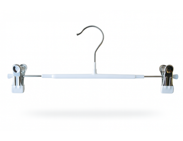 Металлические тремпеля с белыми силиконовыми прищепками — практичное и эстетичное решение для аккуратного хранения и презентации брюк и юбок. Длина 30 см делает эти вешалки универсальными для большинства моделей одежды.