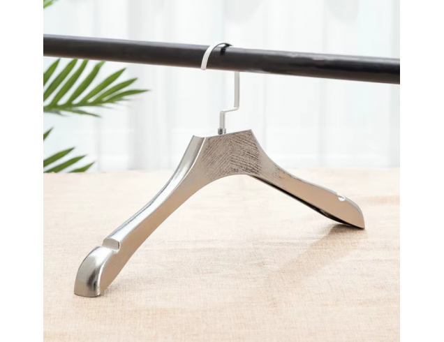 Эти вешалки специально разработаны для верхней одежды — пиджаков, пальто, курток. Благодаря увеличенной ширине плеча (3 см) они надёжно поддерживают форму вещей и не деформируют ткань. Серебристый цвет придаёт вешалке премиальный и современный вид.